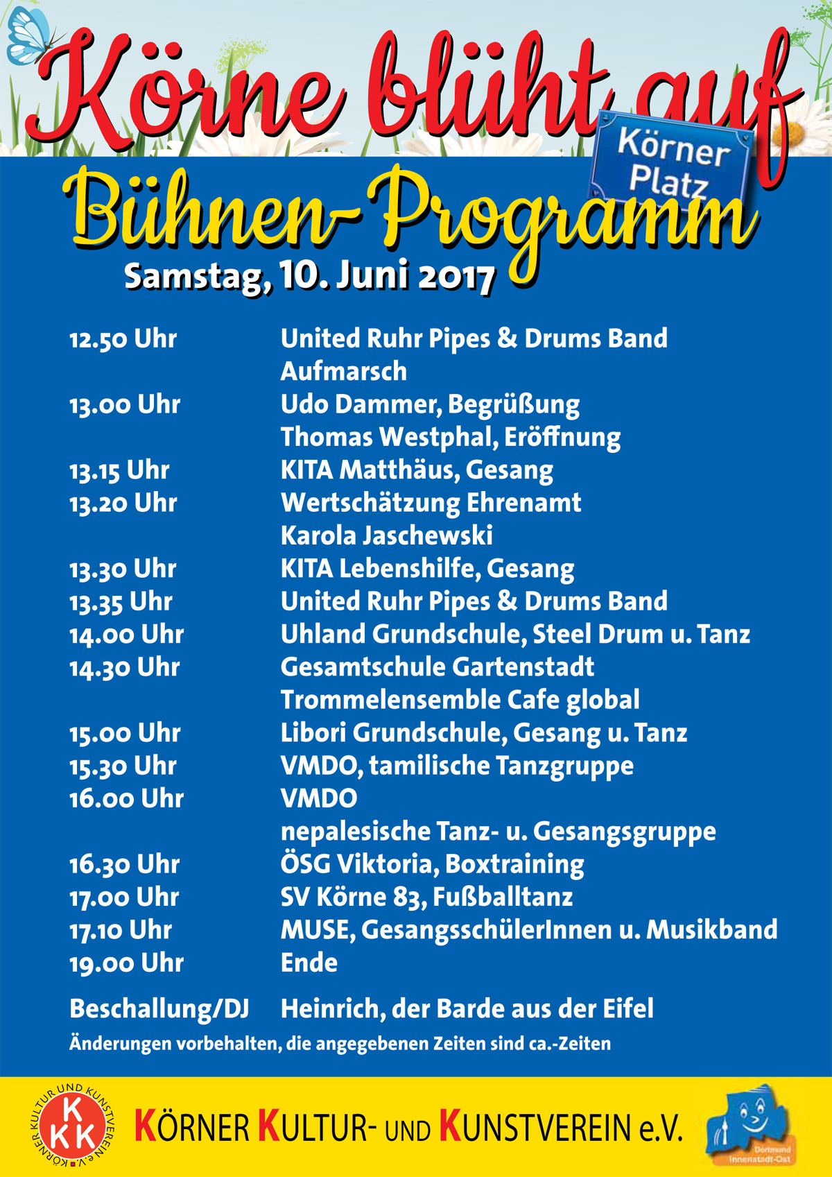 Bereits im neunten Jahr richtet der Körner Kultur- und Kunstverein (KKK) die Körner Familienveranstaltung am 10.06. auf dem Körner Platz/Berliner Str. 1 für das Stadtbezirksmarketing Innenstadt-Ost aus.