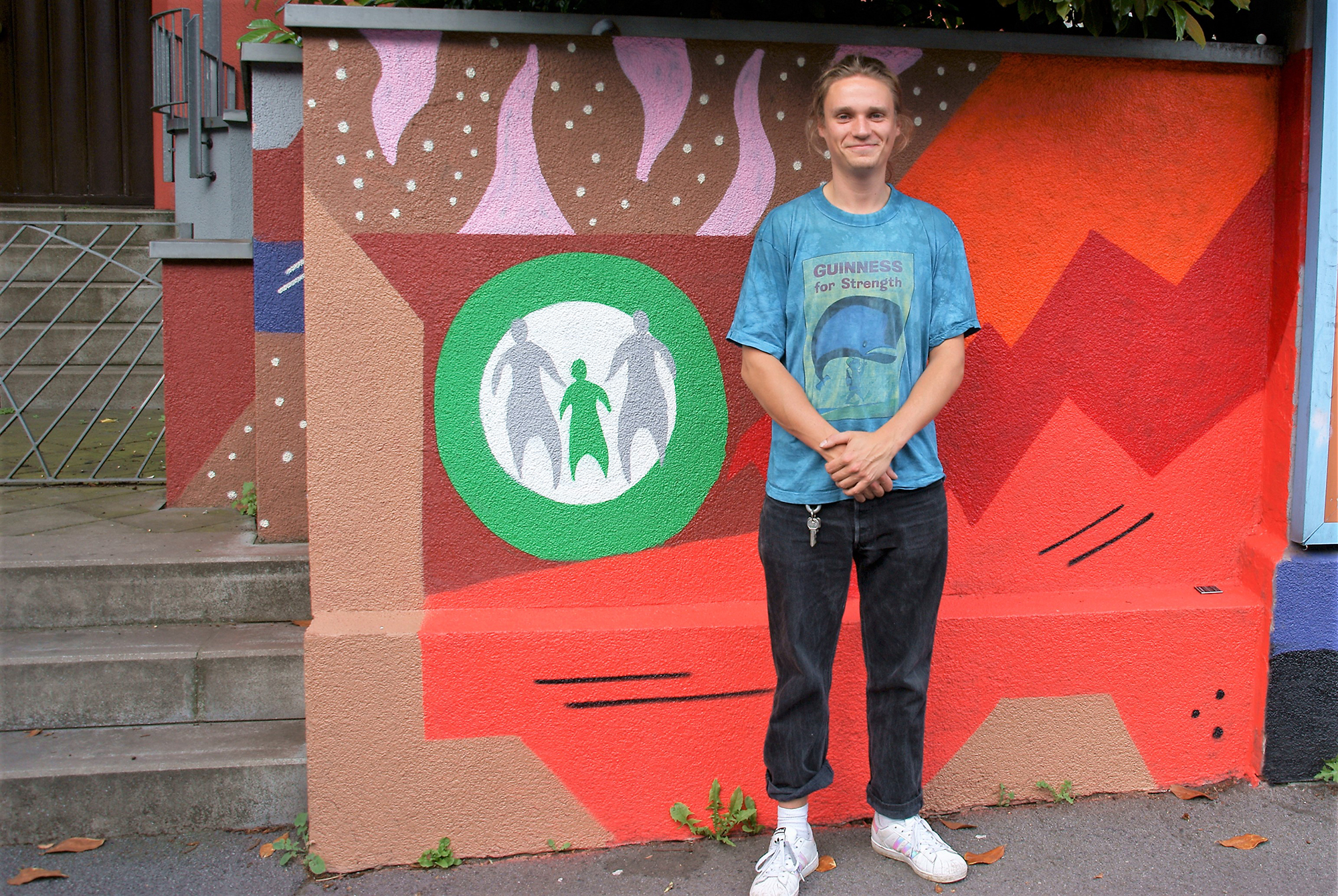 Strahlende Gesichter gab es bei der Übergabe des Graffiti Am Zippen 1 an den Eigentümer Verein für Erziehungshilfen Mengede e.V. (VfE). Gut umgesetzt hat der Künstler Max Rüther nach Meinung aller Beteiligten die Gestaltung der Außenmauer mit den Begriffen Respekt, Toleranz und Vielfalt.