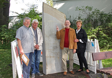 Der Ruhrsandstein steht seit dem 1. Oktober im Körner Park und wartet auf seine Bearbeitung. Die beiden Schnittflächen sollen fantasievoll farblich und künstlerisch gestaltet werden.
