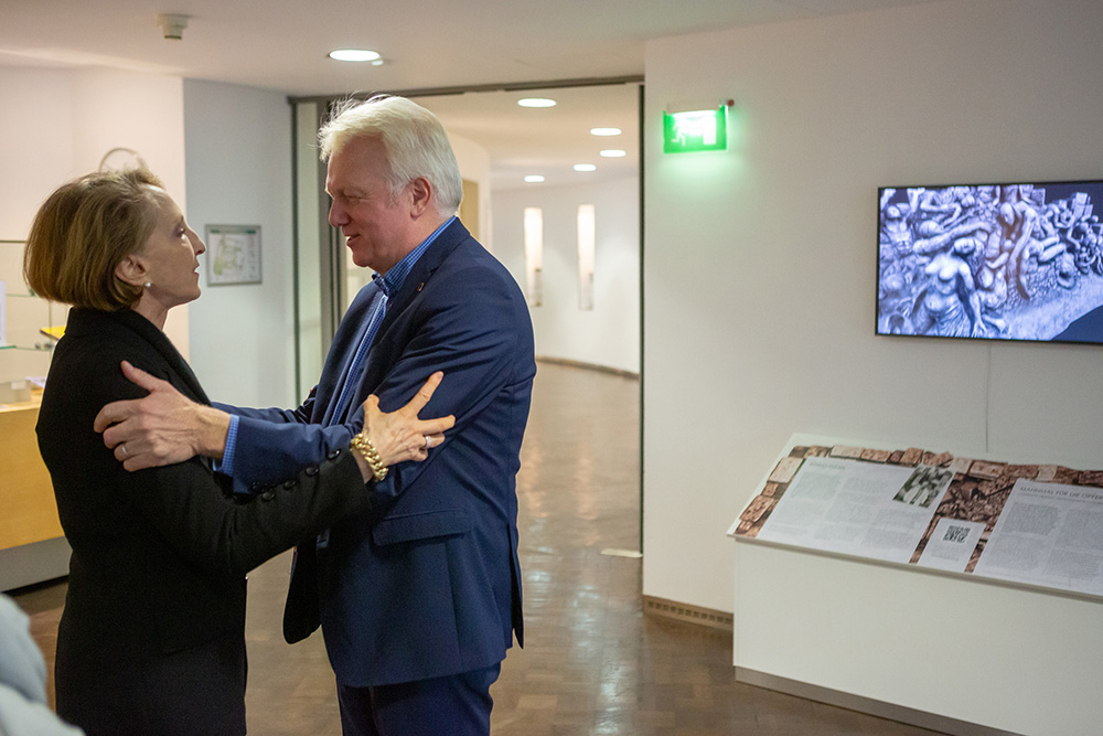 Im Museum für Kunst und Kulturgeschichte wird das virtuelle Mahnmal ab sofort prominent im Eingangsbereich stehen. Es ist Teil der Dauerausstellung und damit für alle Besucherinnen und Besucher kostenlos zu sehen. Benötigt werden dafür entweder eine Spezialbrille, die bei Führungen ausgegeben wird, oder ein Smartphone bzw. Tablet, das im MKK ausgeliehen werden kann. In Anwesenheit von Beryn Hammil, der Enkelin Benno Elkans, wurde das Werk am Freitag (10. Januar) eingeweiht.
