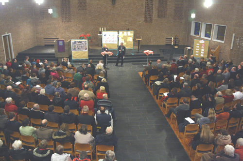 300 Anwohner konnte Bezirksbürgermeister Udo Dammer beim Bürgerdialog in der Melanchthonkirche begrüßen. Sozialdezernentin Birgit Zörner und Vertreter des Sozialamtes erläuterten das Vorhaben, bis zu 120 Flüchtlinge in der ehemaligen Hauptschule am Ostpark unterzubringen.