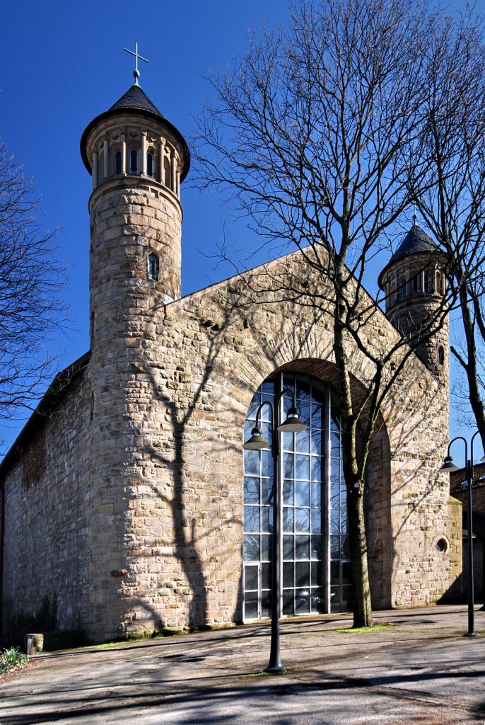 Fast mystisches Licht umfängt den Besucher, wenn er aus dem hellen und weiten Kirchenschiff die kleine Sakramentskapelle an der linken Seite betritt. Sie dient vor allem dem stillen Gebet des Einzelnen. Hierzu passt nicht nur die intime Atmosphäre, die das gedämpfte, farbige Licht schafft, das durch das Fenster der Kapelle fällt. Auch das Motiv des Kirchenfensters erscheint besonders gut gewählt. Es geht auf das Alte Testament zurück. Im zweiten Buch Mose wird geschildert, wie Moses beim Schafehüten auf einen Dornbusch trifft, der in Flammen steht, aber nicht zu Asche verbrennt. Als Moses näher tritt, erkennt er, dass sich Gott darin verbirgt: eine Geschichte also, in der ein Mensch Gott fast unmittelbar nahe kommt.