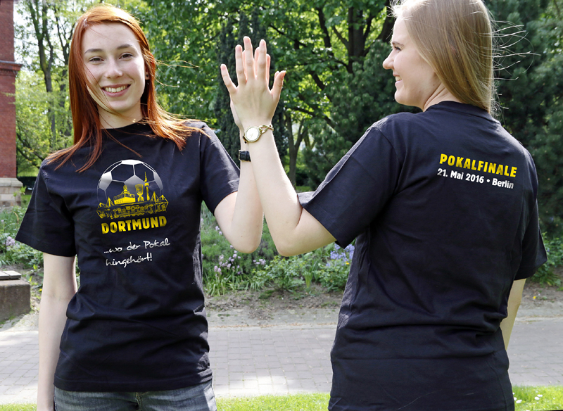 Kurz vor dem DFB-Pokalfinale Borussia Dortmund gegen FC Bayern München gibt es vom 17. Mai bis 20. Mai Finale-Shirts in der Dortmund-Agentur zu kaufen. Die T-Shirts sind auf 3.000 Stück limitiert.