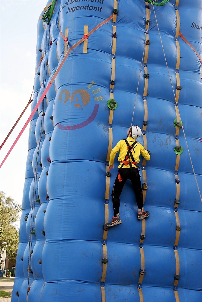 Am Dienstag, 12. September steht der Spielmobil-Bus von 16 bis ca. 19 Uhr dem Körner Platz. Für Kinder und Jugendliche bietet er vielfältige Draußen-Spiele: Badminton, Mooncars, Straßenkreide zum Malen oder den GAGA-Ball – was das ist, wird vor Ort erklärt. Besonderer Clou ist der ca. neun Meter hohe mobile Kletterturm „Eiger“ aus dem Big Tipi in der Erlebniswelt Fredenbaum, der junge Menschen ab einer Körpergröße von 1,30 Metern zum Klettern einlädt. Wer hinauf will, braucht das schriftliche Einverständnis der Eltern. Auszubildenden der Feuerwehr helfen beim Aufbau und der Sicherung des Kletterturms.
