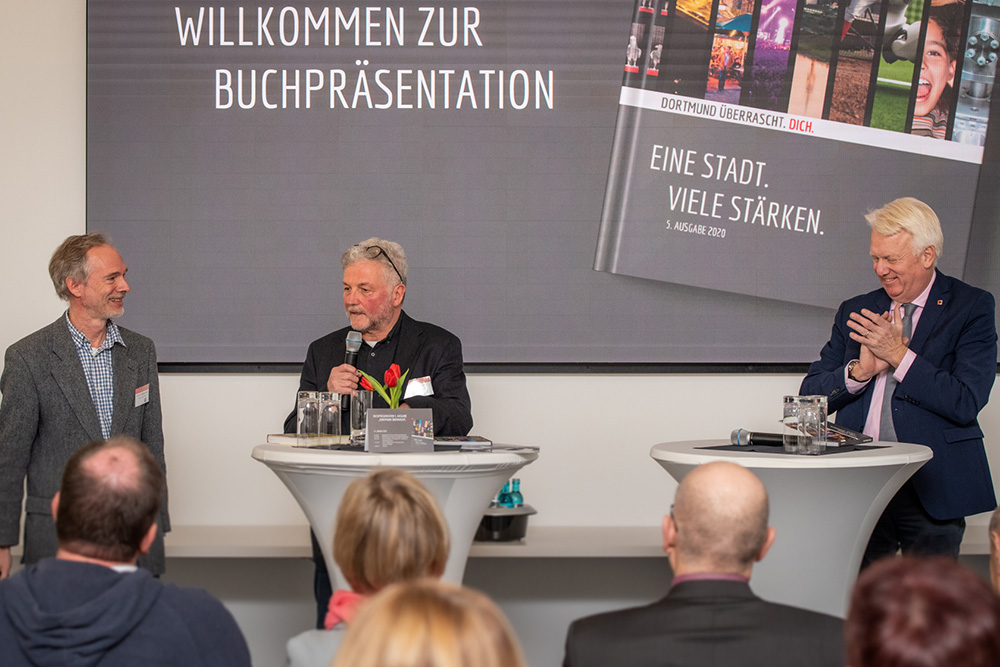 Was viele auch nicht wissen: Dortmund ist einer der größten Hochschul-Standorte bundesweit und exzellent in Forschung, Technik und Lehre aufgestellt. Immer mehr junge Start-Up-Unternehmen siedeln sich an, die Wirtschaft wächst. „Das alles belegt: Dortmund ist überraschend anders“, so Thomas Kampmann, Stabsstellenleiter „Markenkern Dortmund“ bei der Stadt Dortmund. Er zeichnet verantwortlich für die Imagekampagne. Zum Team gehören noch Lena des Boer, Ute Piotrowski und Laura Herfurth.