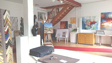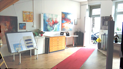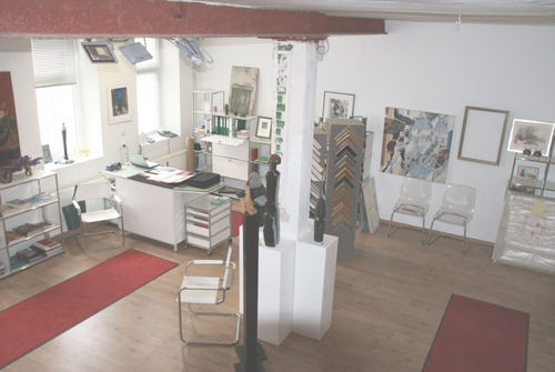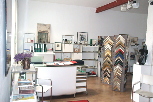 Das Einrahmungsatelier im Ausstellungsraum befindet sich weiterhin in der Kaiserstraße 76. Es gibt zwei Zugangsmöglichkeiten, und zwar durch den Flur in der Kaiserstraße 76 (zwischen BELLINI-Papeterie & Kunst und Malzers Backstube). An der Haustür finden man eine Klingel. Ein zweiter Eingang befindet sich in der Hamburger Straße 55.