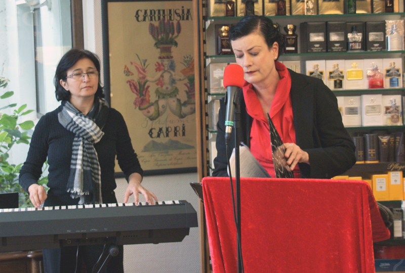 Auch von Tirzah Haase und Armine Ghuloyan sind an diesem Vormittag weihnachtliche Worte und Töne zu hören – aber nicht nur die besinnlichen. Die beiden Künstlerinnen mischen hier auf hinterlistige Weise bekannte Lieder von „Winter Wonderland“ bis „Jingle bells“ mit satirischen Texten von Scheibner bis Loriot.
