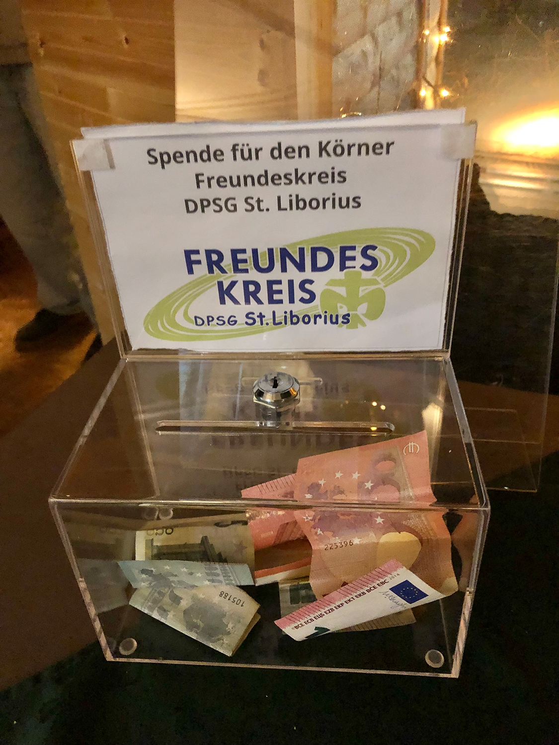 Die Körneschaft steuerte einen kostenlosen alkoholfreien Apfelpunsch bei und verschenkte die bekannten Körne-Tassen und Körne-Taschen gegen eine Spende für den Freundeskreis der Körner Pfadfinder:innen.