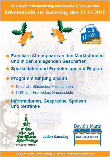 Am 23. November 2019 lädt das Wohn– und Begegnungszentrum Zehnthof (Am Zehnthof 119, 44141 Dortmund) ab 12:00 Uhr zu einem Weihnachtsmarkt mit Adventsbasar sowie zu einer Tombola und Flohmarkt ein. Der Adventsbasar bietet wieder einmal Vieles, was die vorweihnachtliche Zeit schön macht: Kerzen, Gestecke und allerlei Kunsthandwerk. Mitarbeiter/-innen, Kunsthandwerker und Künstler/-innen aus dem Umfeld des WBZ werden im Eingangsbereich und […]