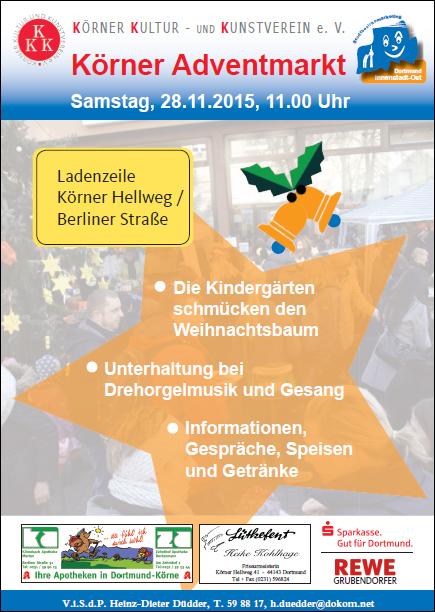 Der Körner Adventmarkt fand am 28.11. am Körner Hellweg, Ecke Berliner Straße statt. Der Weihnachtsbaum wurde von den Kindern der Kindergärten FABIDO Berliner Straße, Libori und Matthäus geschmückt. Als Anerkennung erhielten die Kinder traditionell einen Stutenkerl. An den Ständen wurden selbst erstellte Artikel aus dem Kindergarten- und Schulbereich angeboten. Für das leibliche Wohl sorgten Heißgetränke und kleine Speisen. Die Veranstaltung […]