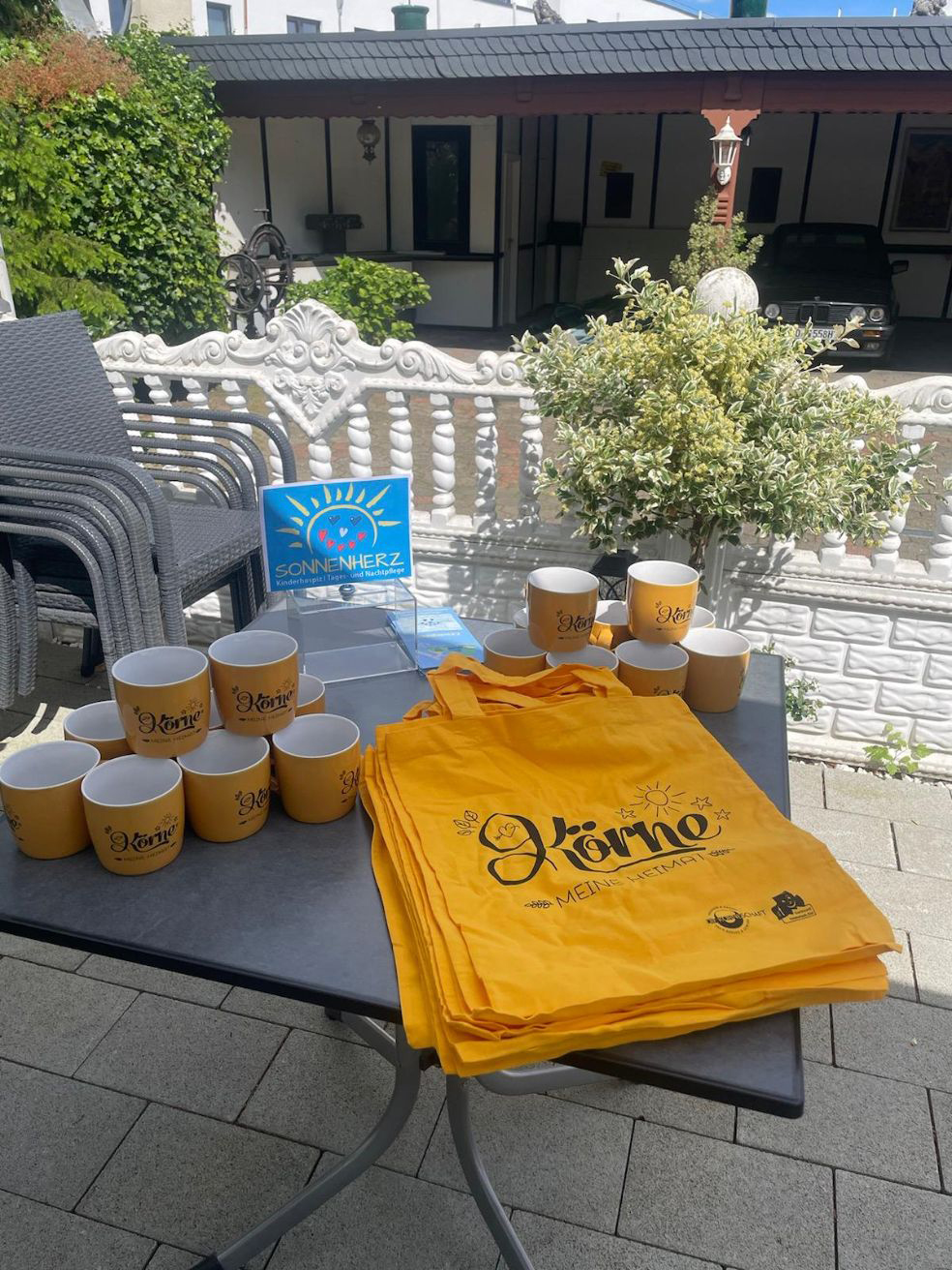 So hatte sich die Körneschaft auch direkt eine Möglichkeit der finanziellen Unterstützung des Projekts „Sonnenherz“ überlegt. Die begehrten schwarz-gelben „Körnetaschen“ und „Körnetassen“ konnten sich an diesem Sonntag alle Besucherinnen und Besucher in unbegrenzter Anzahl mitnehmen, gegen eine Spende für das „Sonnenherz“. Davon machten alle rund zwanzig Gäste der Veranstaltung Gebrauch, so dass eine ordentliche Spendensumme gesammelt werden konnte.