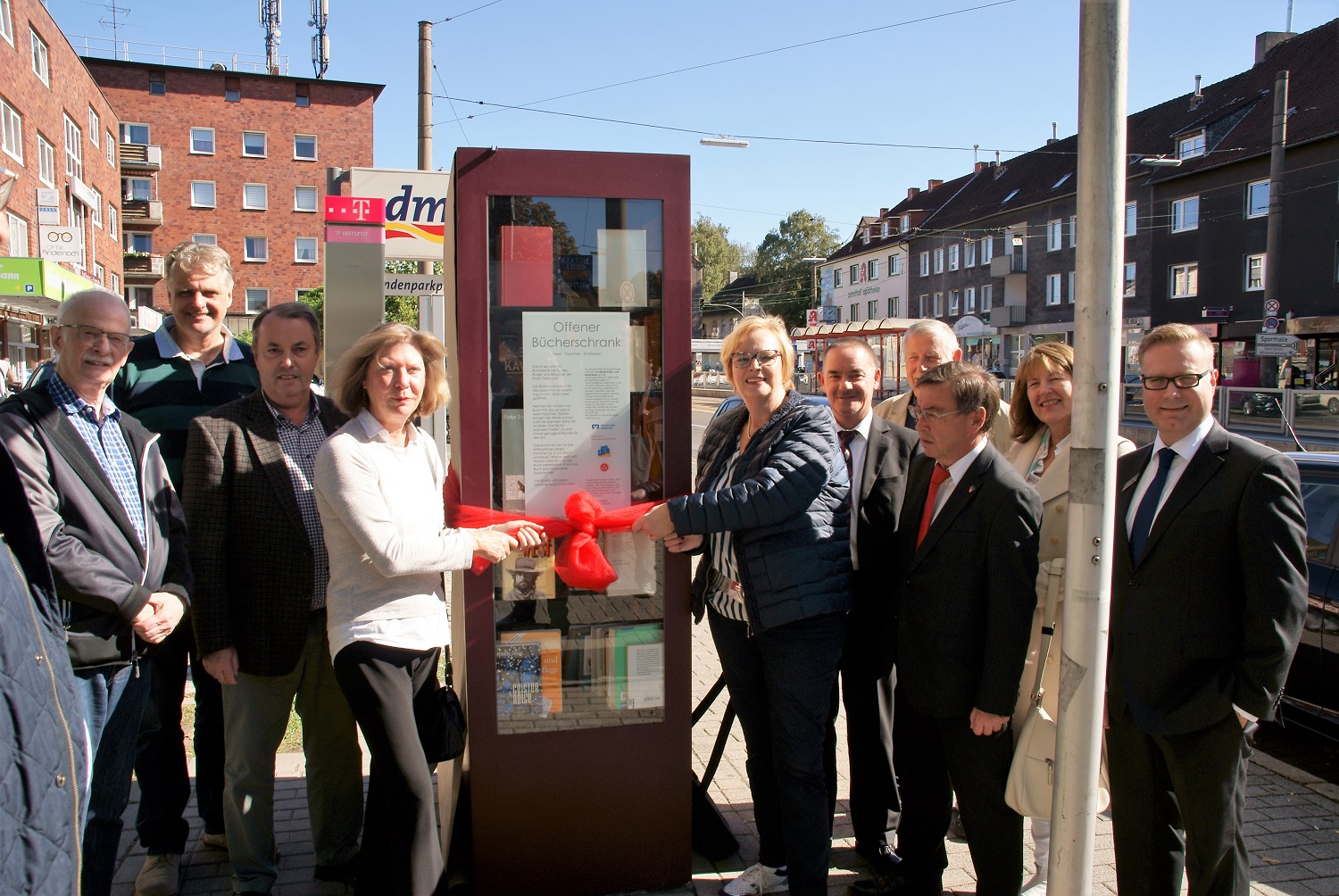 Udo Dammer, Vorsitzender des Körner Kultur- und Kunstvereins, hatte zur offiziellen Übergabe des neuen Bücherschrankes neben dem Obelisken am Eingang der Körner Parks eingeladen.