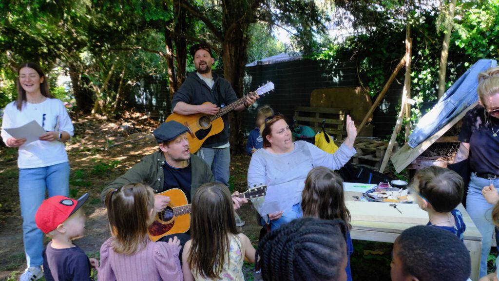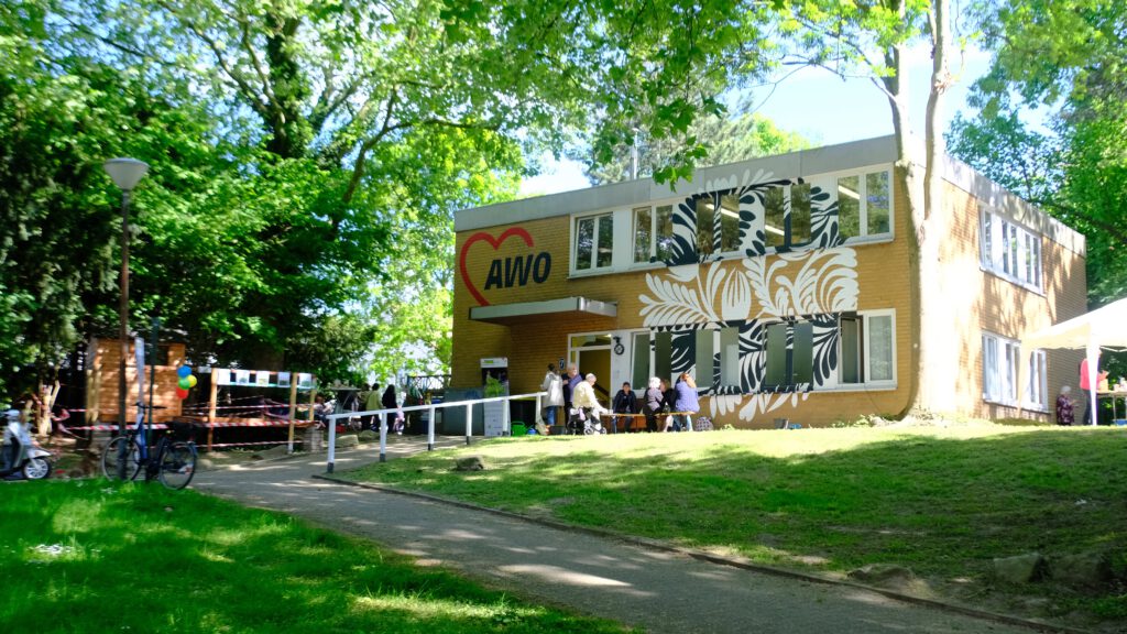 Am Freitag (9. Mai) ging es gesellig zu in der AWO Begegnungsstätte am Wambeler Hellweg 7. Über 100 Vereinsmitglieder, Nachbarn, Familien und Interessierte nutzten die Gelegenheit und erkundeten die Innenräume und das Außengelände der Begegnungsstätte. Der AWO Ortsverein Körne/Wambel lud im großen gemütlichen Begegnungssaal zu Kaffee, Kuchen und Gesprächen ein. Frische Waffeln sowie Würstchen vom Grill wurden draußen angeboten. Ein Spieletisch der Nachbarschaftshelferinnen des Seniorenbüros Brackel sorgte hier für vergnügte Unterhaltung. Mit Unterstützung des FABIDO Familienzentrums Akazienstraße konnten Kinder und Erwachsene gemeinsam mit den AWO „Holzwürmern“ Vogelhäuser bauen und kreativ gestalten. Zusammen mit Ulrike Klotz von Begegnung VorOrt Brackel wurde ein Stein-Moosfeld angelegt, um den Außenbereich der Begegnungsstätte noch grüner und klimafreundlicher zu machen. Wer sich zwischendurch erfrischen wollte, nahm das Angebot der „Trinkpause“ wahr. Das Seniorenbüro Innenstadt-Ost bot mit Kräutern und Früchten verfeinertes Trinkwasser im Rahmen eines Informationsstandes zum Umgang mit heißen Temperaturen an. Am Höhepunkt der Feier wurde es laut und fröhlich: Alle Besucherinnen sangen gemeinsam das Lied „Die Vogelhochzeit“.