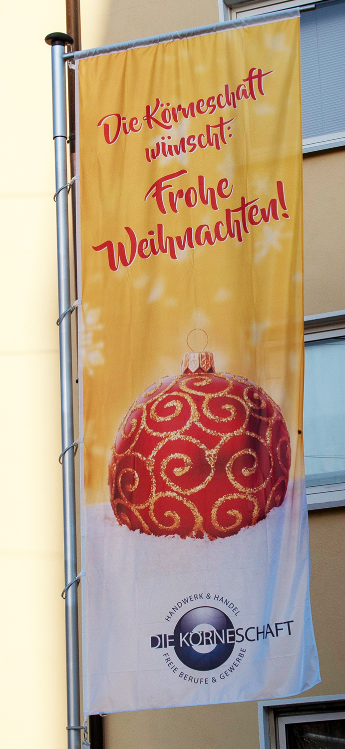 Pünktlich zum 1. Advent wurden auch die neuen Weihnachtsfahnen der Körneschaft im Körner Zentrum präsentiert.