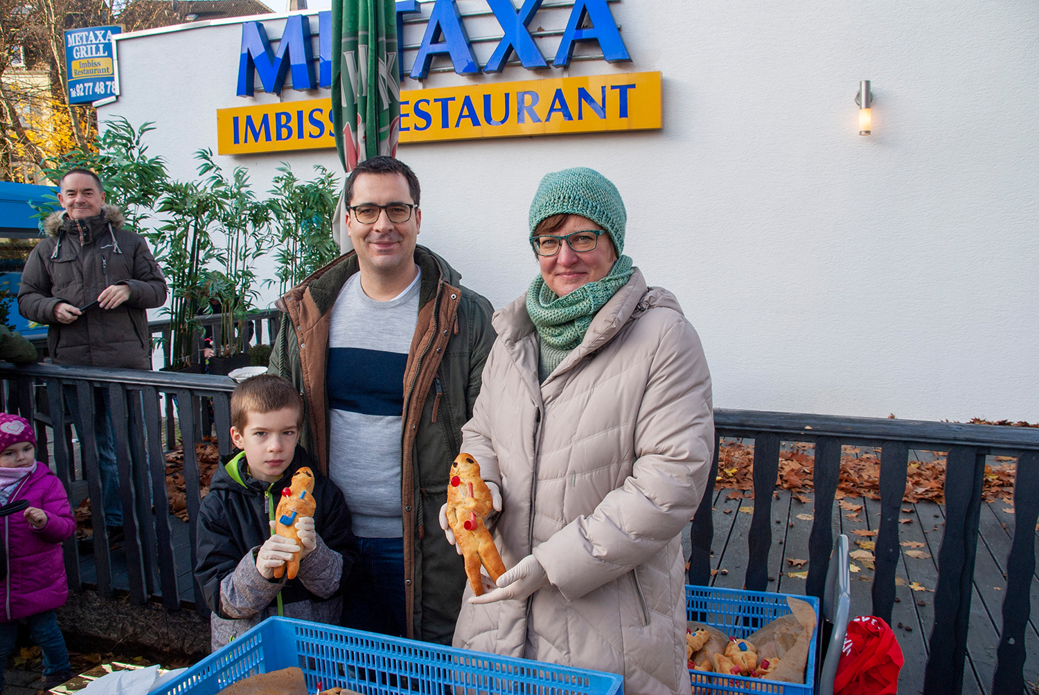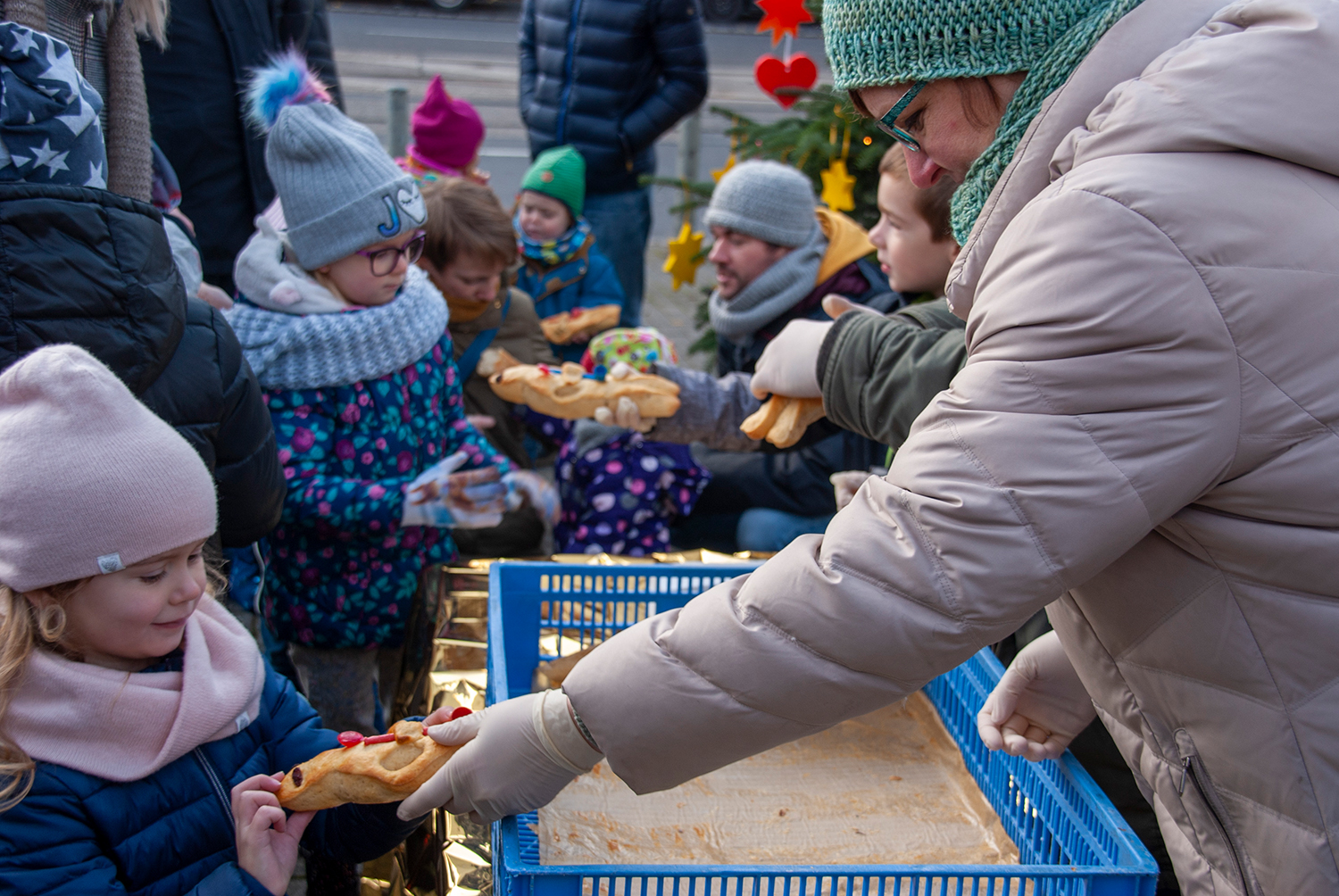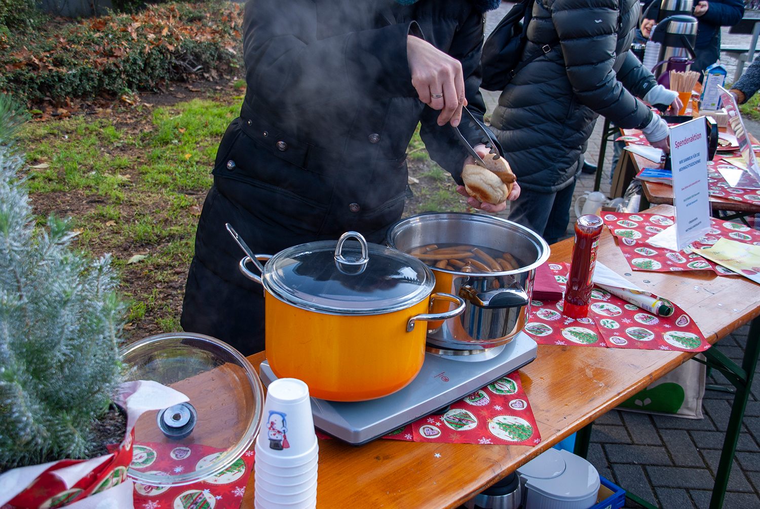 Die Fördervereine der Einrichtungen und Schulen haben zusätzlich mit Speisen und Getränken für das leibliche Wohl gesorgt. Im Angebot waren Würstchen und selbst gebackene Plätzchen sowie Kaffee und heißer Kakao. Nachdem das Liederheft an die kleinen und großen Sängerinnen und Sänger verteilt war, wurden mit musikalischer Unterstützung durch einen Vater mit seinem Akkordeon gemeinsam Weihnachtslieder gesungen.