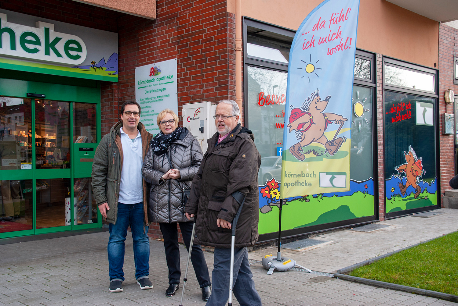„Es sind häufig nur Kleinigkeiten, die das Leben leichter machen“ stimmte Herkelmann die Runde für den Gang durch das Dorf ein. So können mobile Rampen oder Handläufe den Weg zu den Ladeneingängen erleichtern, wo der Zugang nicht ebenerdig möglich ist. Positive Beispiele am Hellweg machen deutlich, dass sich die Gewerbetreibenden zunehmend damit befassen. Ärzte können mit einem Piktogramm auf den barrierefreien Zugang hinweisen, soweit ein Fahrstuhl vorhanden ist.